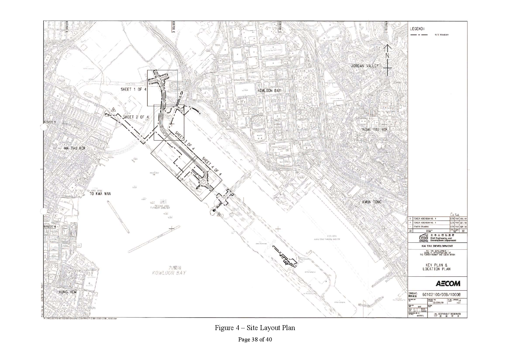 1.2 Contract No. ED/2018/01 - Kai Tak Development – stage 4 infrastructure at the former runway and south apron (The Project), comprises mainly the design and construction of a dual two- lane Road D3 (Metro Park Section), a single 2-lane Road L12d, a salt water pumping station, a sewage pumping station, landscaped deck and promenade above and adjoining Road D3 (Metro Park Section) respectively, some remaining road works at Road L14, noise barrier at Road D3A, and other associated works at the former runway and south apron. The proposed works are shown in Figure 1 and Figure 2. During the course of the Contract No. ED/2018/01, there may be modification of noise barriers in association with the construction of footbridges connecting to the landscaped deck of Road D3A by developers of adjacent lands (Figure 3). The proposed works and site boundary are shown in Figure 4.