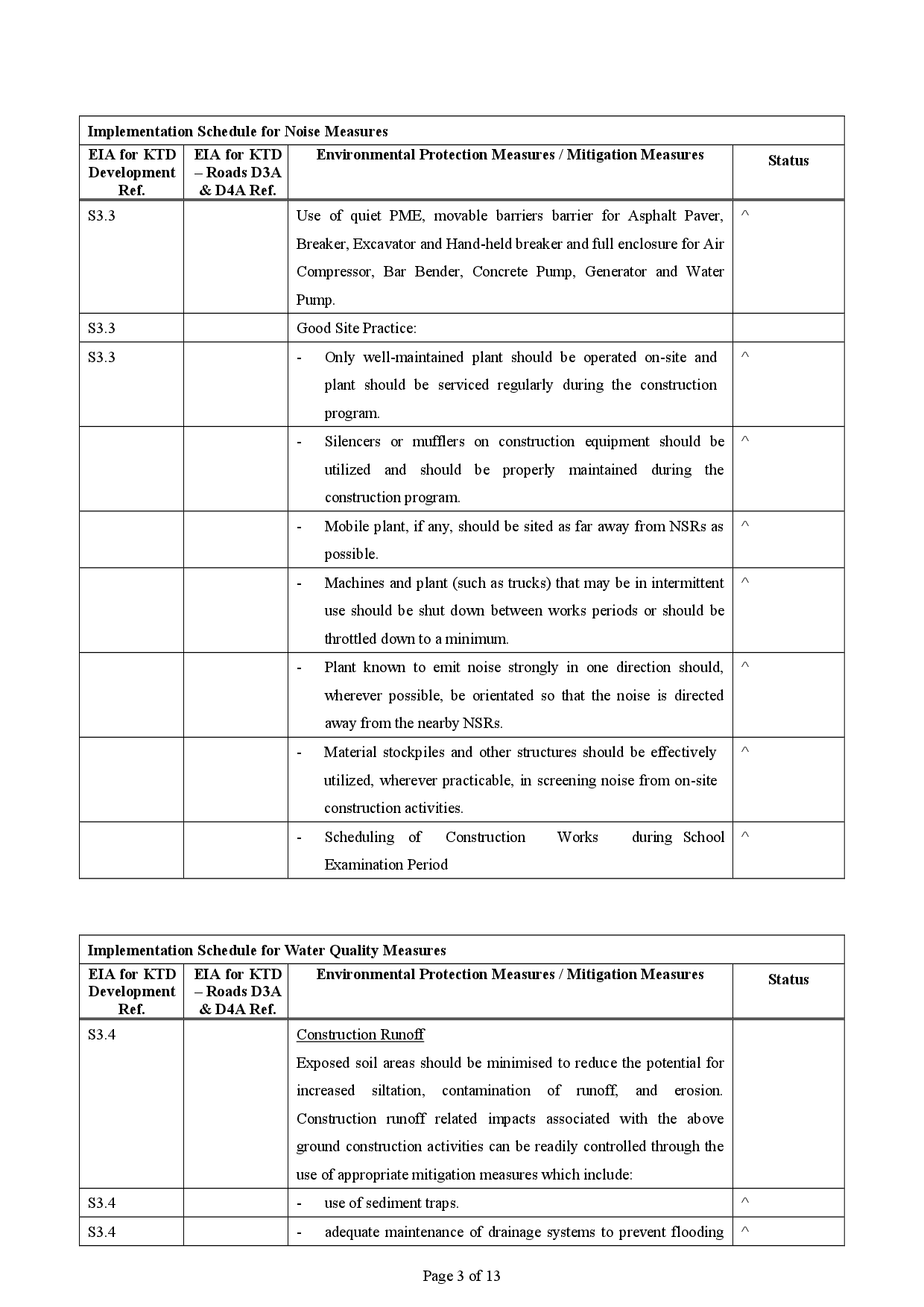 1.5 Air quality and noise monitoring has been proposed in the EM&A Manual with EIA Register Nos. AEIAR-130/2009 for Kai Tak Development while no air quality and noise monitoring are proposed in EM&A Manual with EIA Register Nos. AEIAR-170/2013 for Roads D3A and D4A.