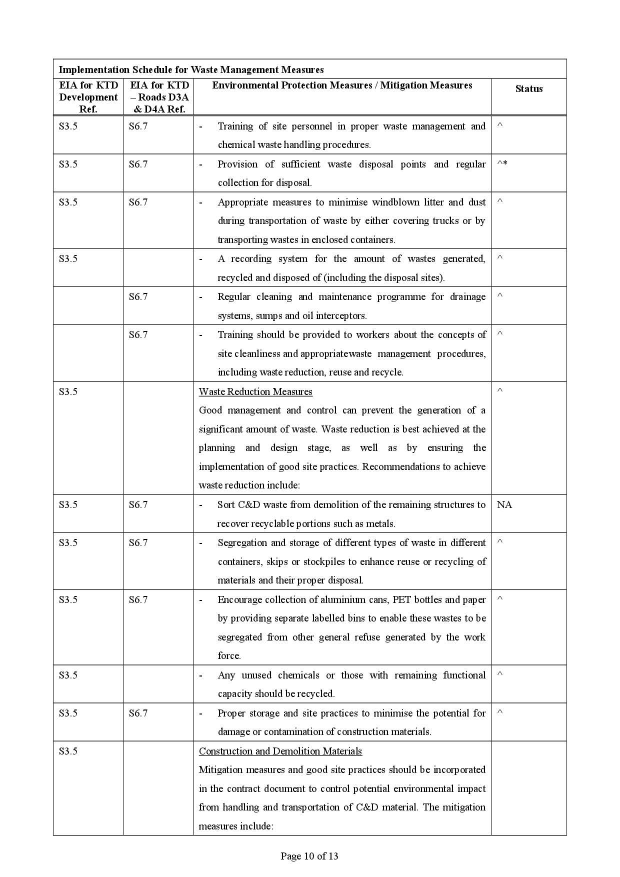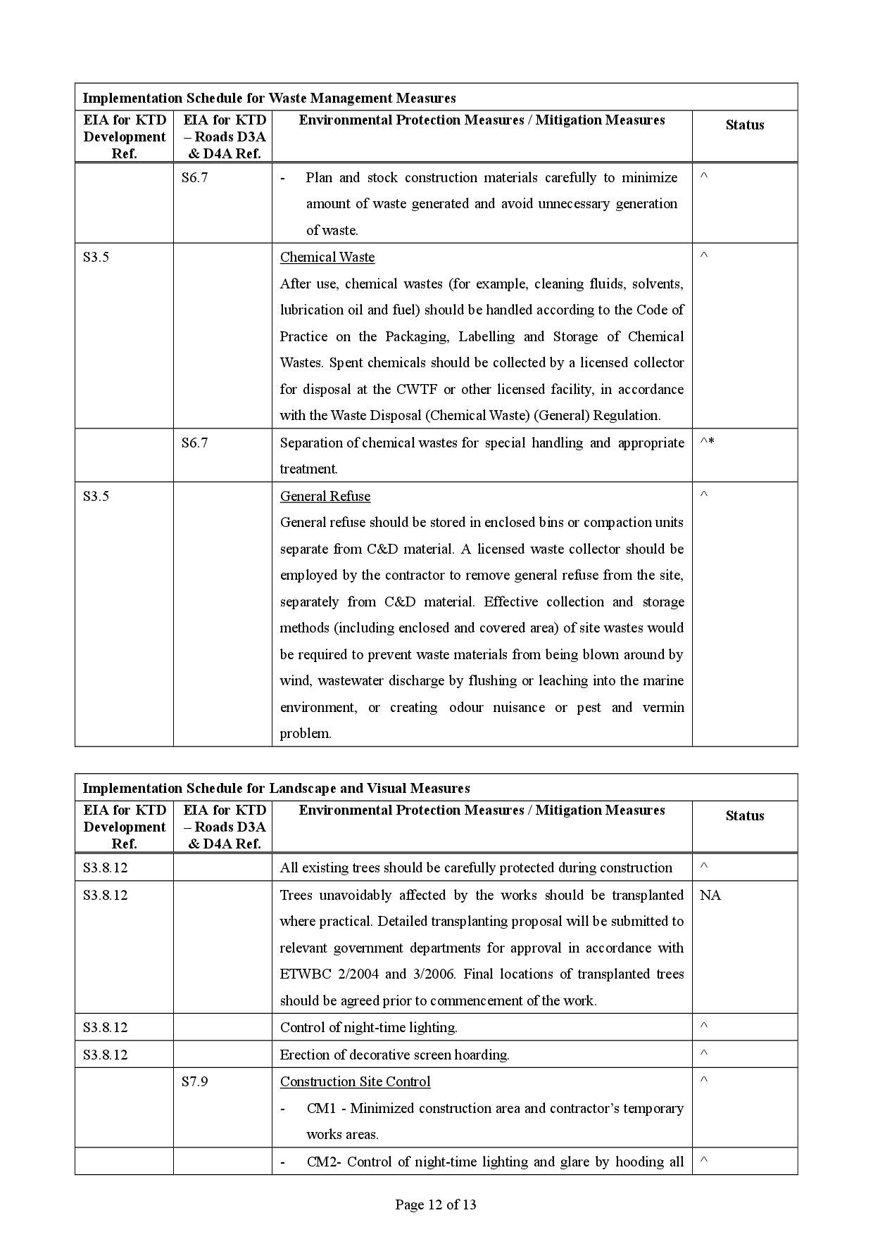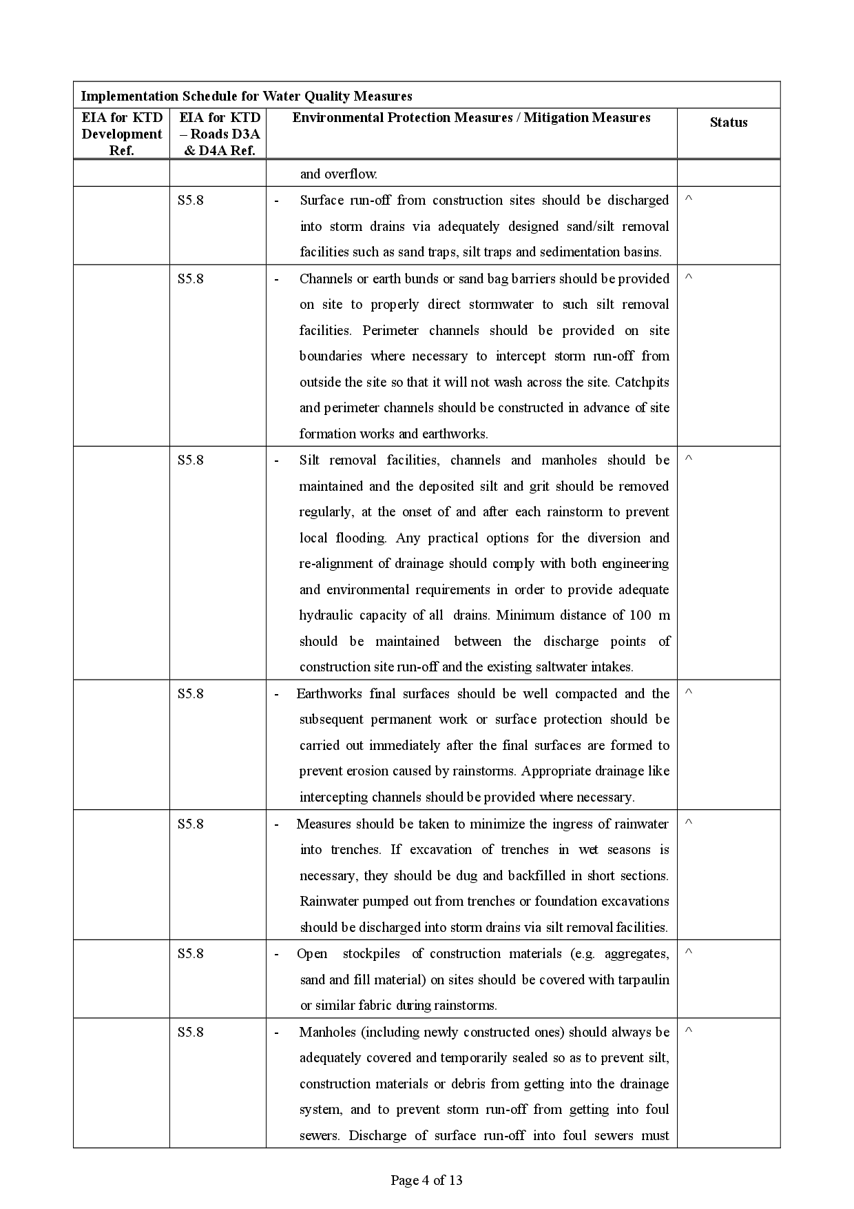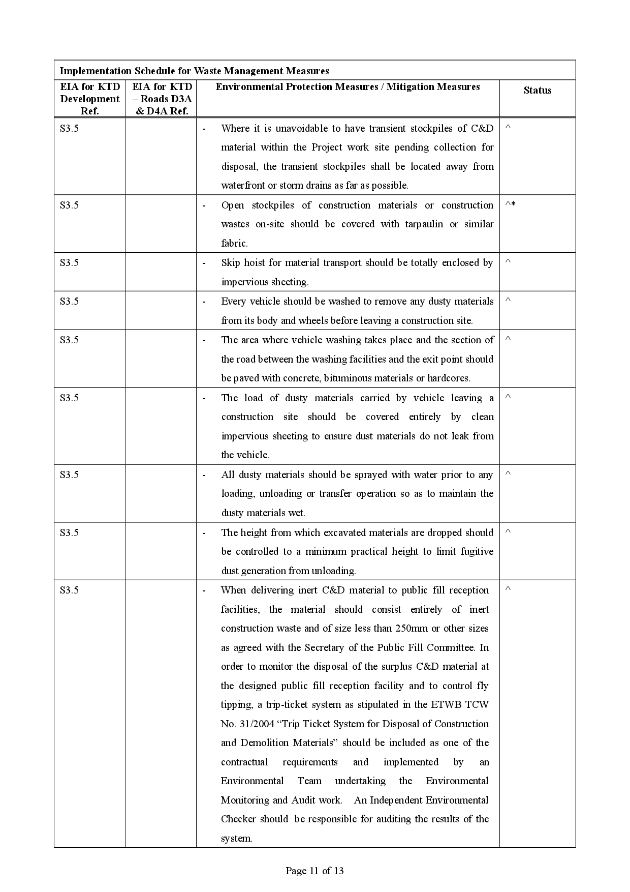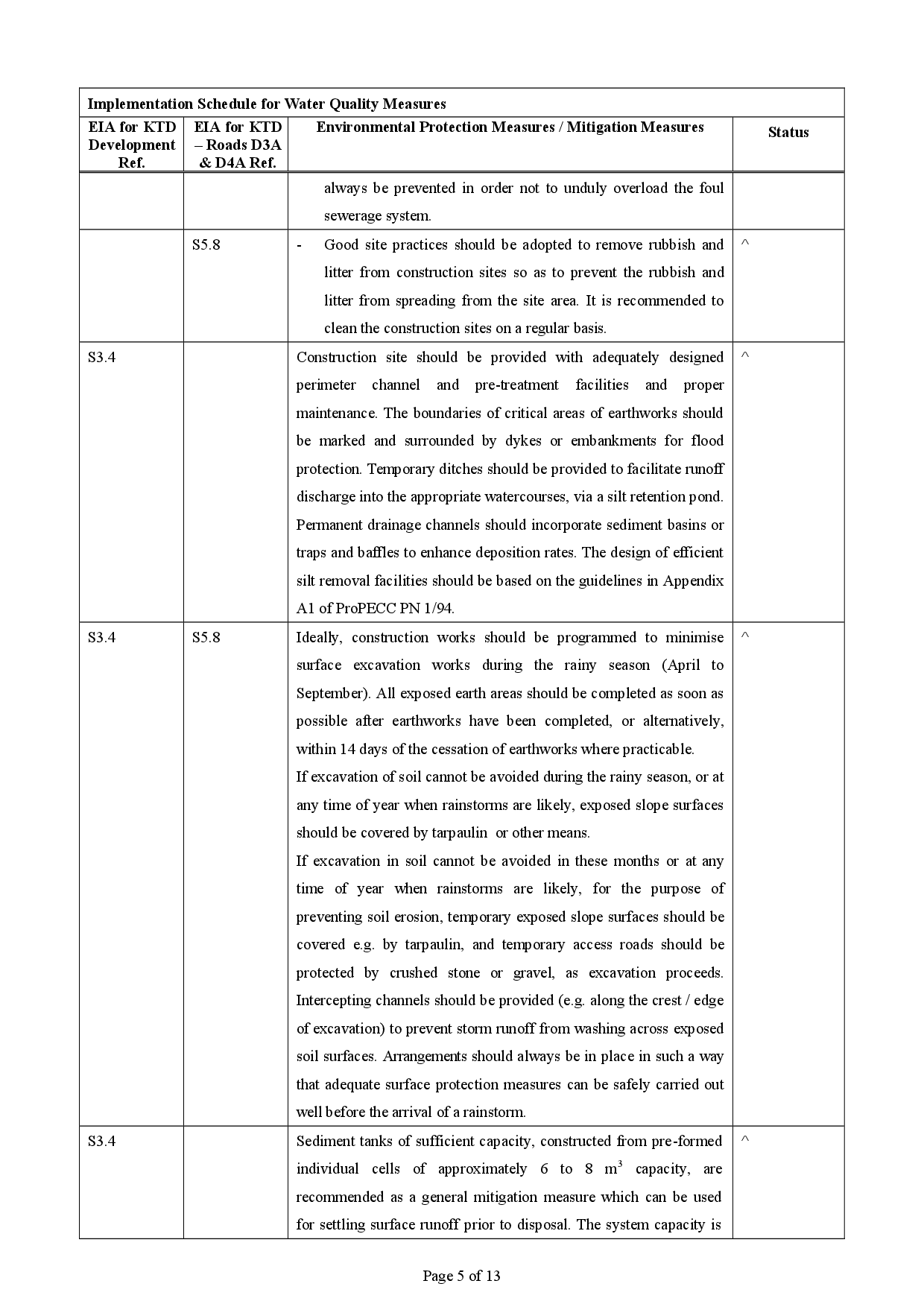 4.3 Mitigation measures recommended in the EIA Report were implemented by the Contractor where applicable and were considered effective in reduction the waste generation during the reporting period.