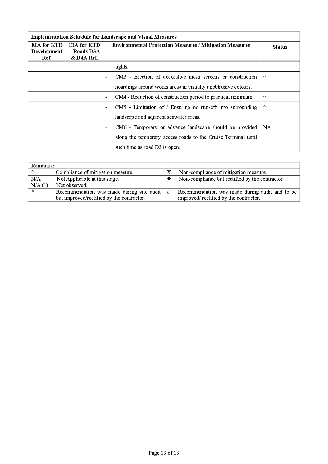 3.4 Should non-compliance of the landscape and visual impact occur, action in accordance with the action plan presented in Appendix E shall be performed.
