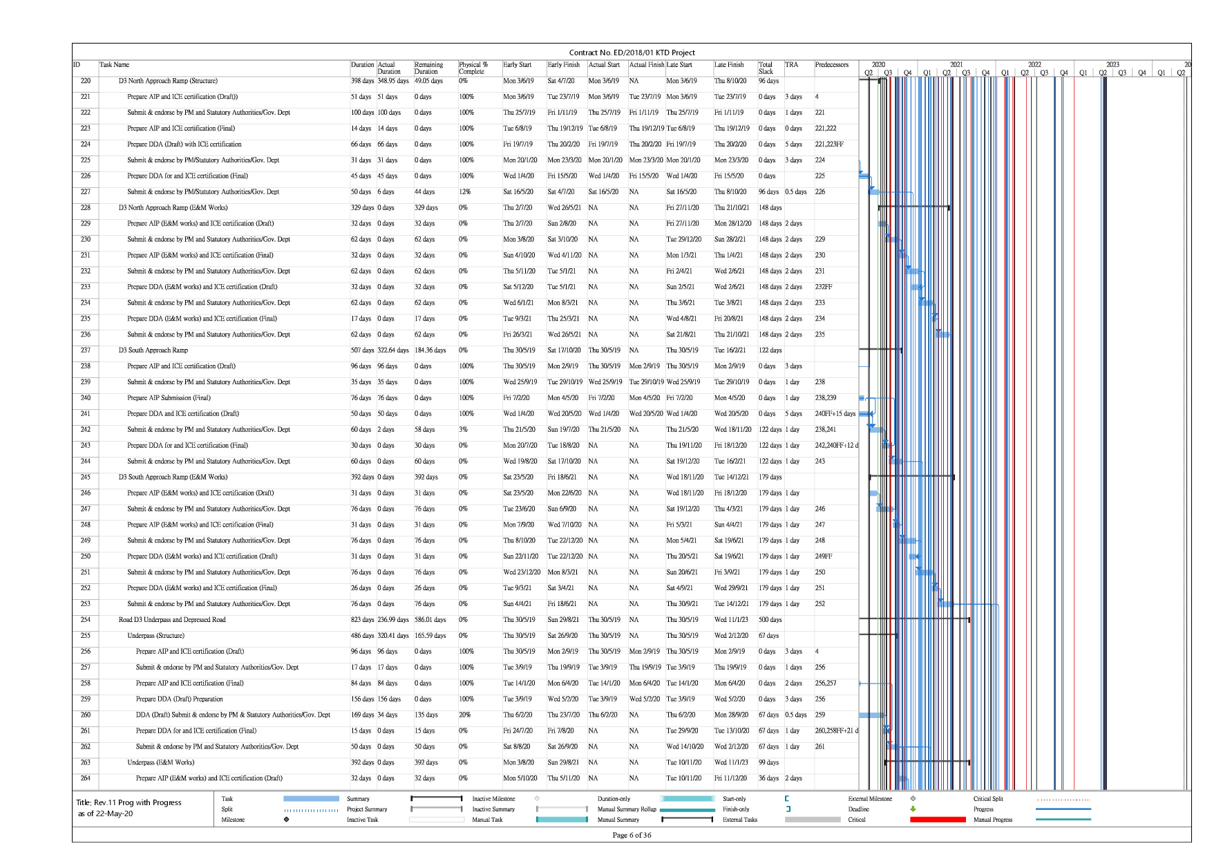 - North Approach Ramp – Construction of wall, intermediate slab and column - Bridge D3 – Construction of pile cap & pier - North Depressed Road – Construction of wall & top slab / dismantling of wailing & strut of cofferdam - Underpass – Excavation and construction of base slab - South Approach Ramp – Installation of sheet pile and excavation - Landscaped Deck – Construction of bored piles - District Cooling System seawater intake box culvert – Construction of cofferdam - Noise barrier – Installation of steel structure and PMMA panel - Lift 3 – Construction of cofferdam for footing |