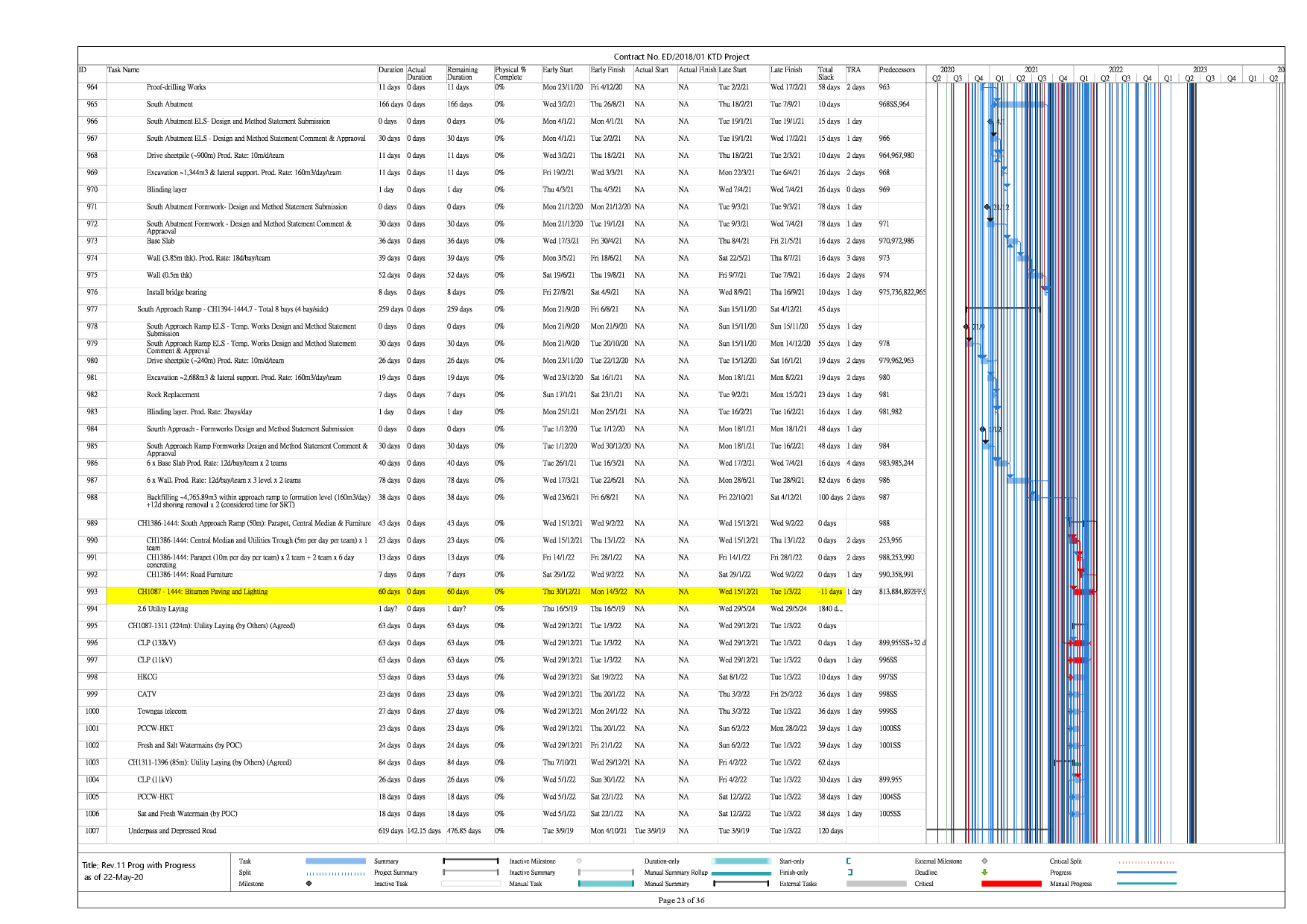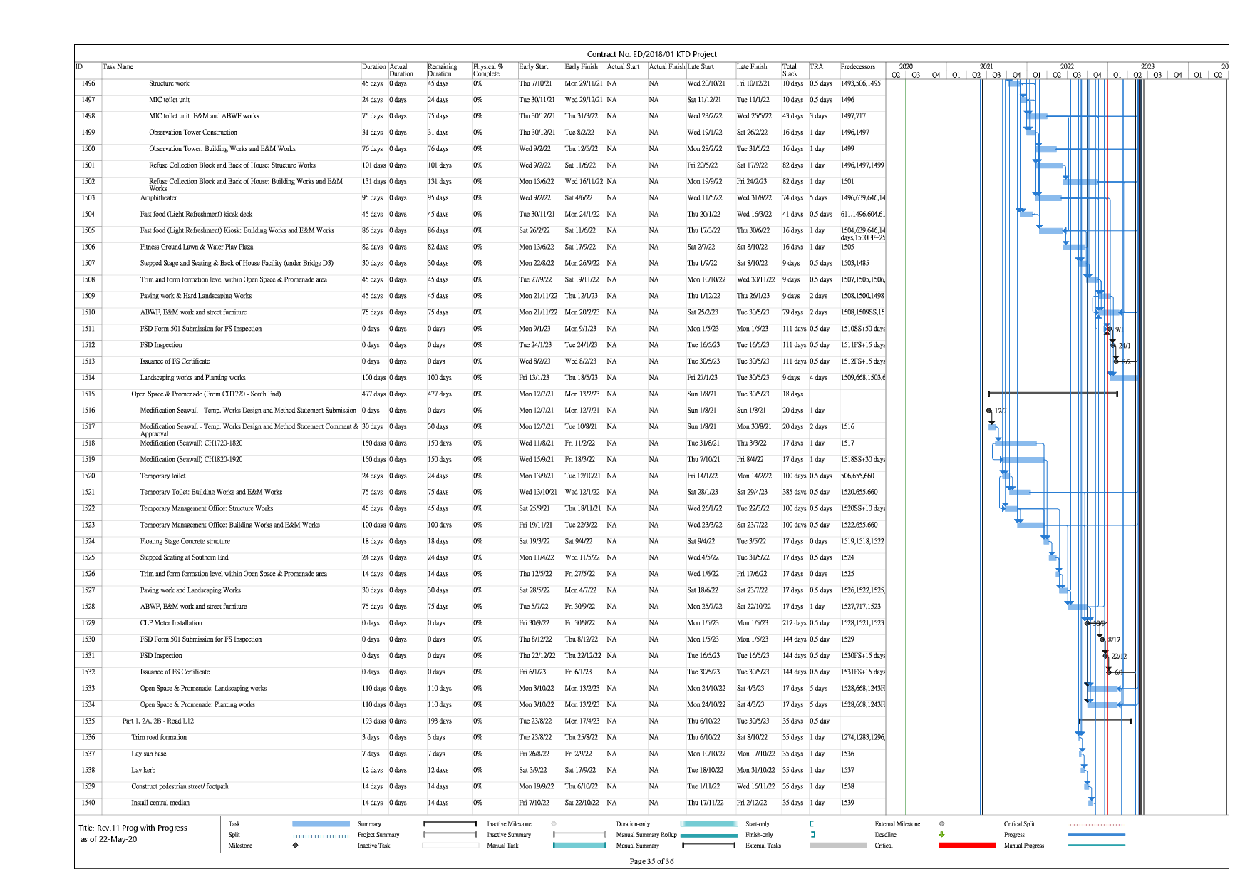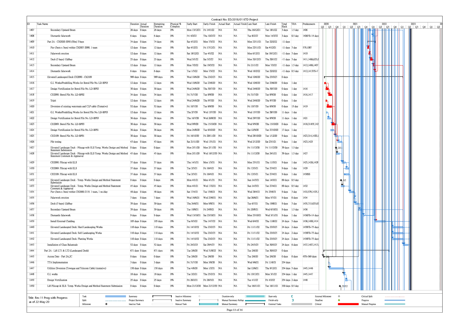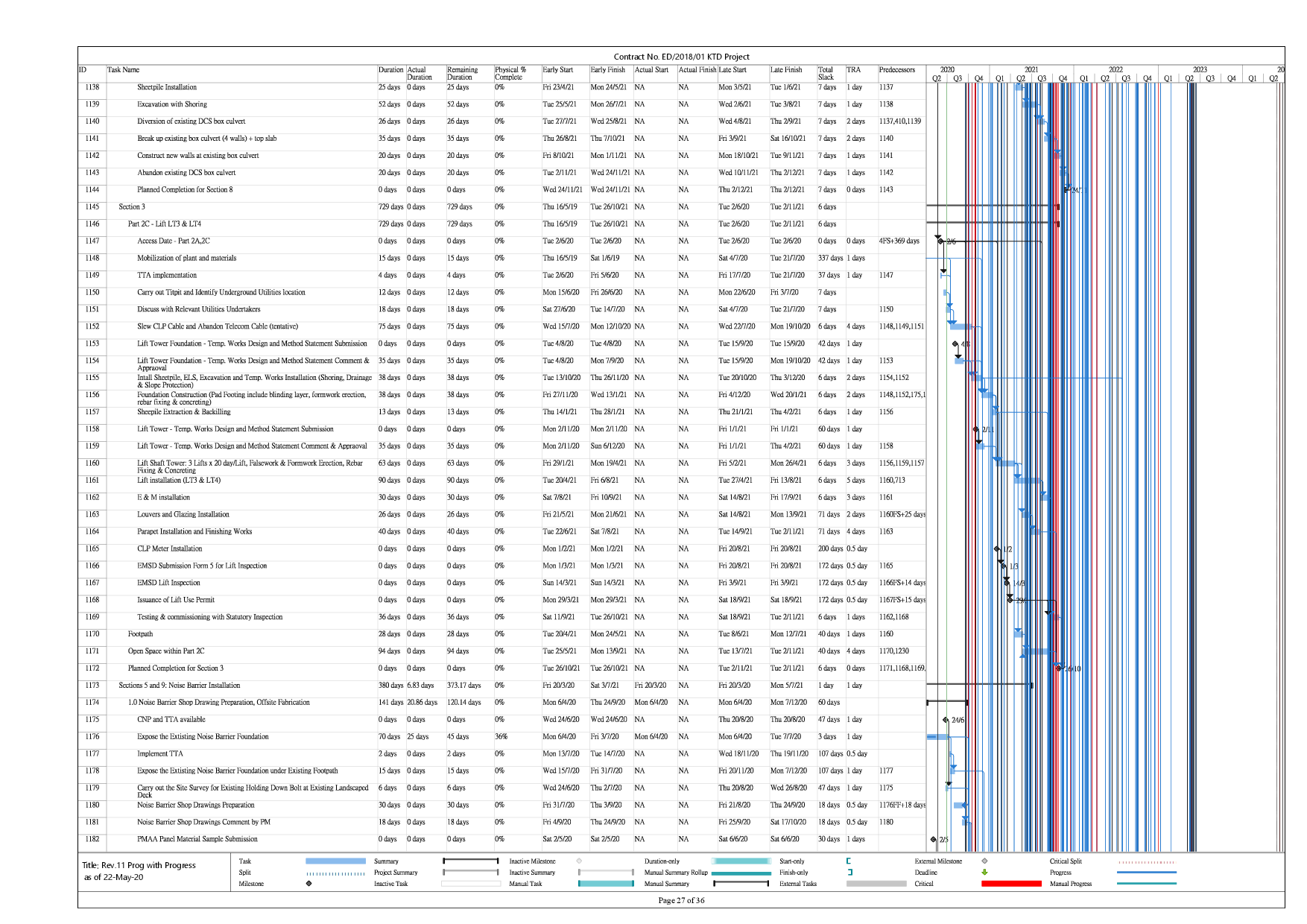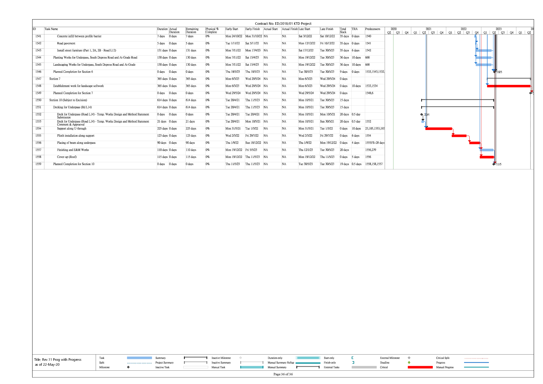 - Noise barrier - Construction of footings - District Cooling System seawater intake box culvert - Construction of cofferdam - Landscaped Deck – Construction of bored piles - Construction of base slab and walls of Underpass and South Depressed Road - North Approach Ramp – Construction of wall, intermediate slab and column - Bridge D3 – Construction of pile cap - North Depressed Road – Construction of wall / dismantling of wailing & strut of cofferdam - Underpass – Excavation - South Approach Ramp – Installation of sheet pile and excavation - Lift 3 – Construction of cofferdam for footing |