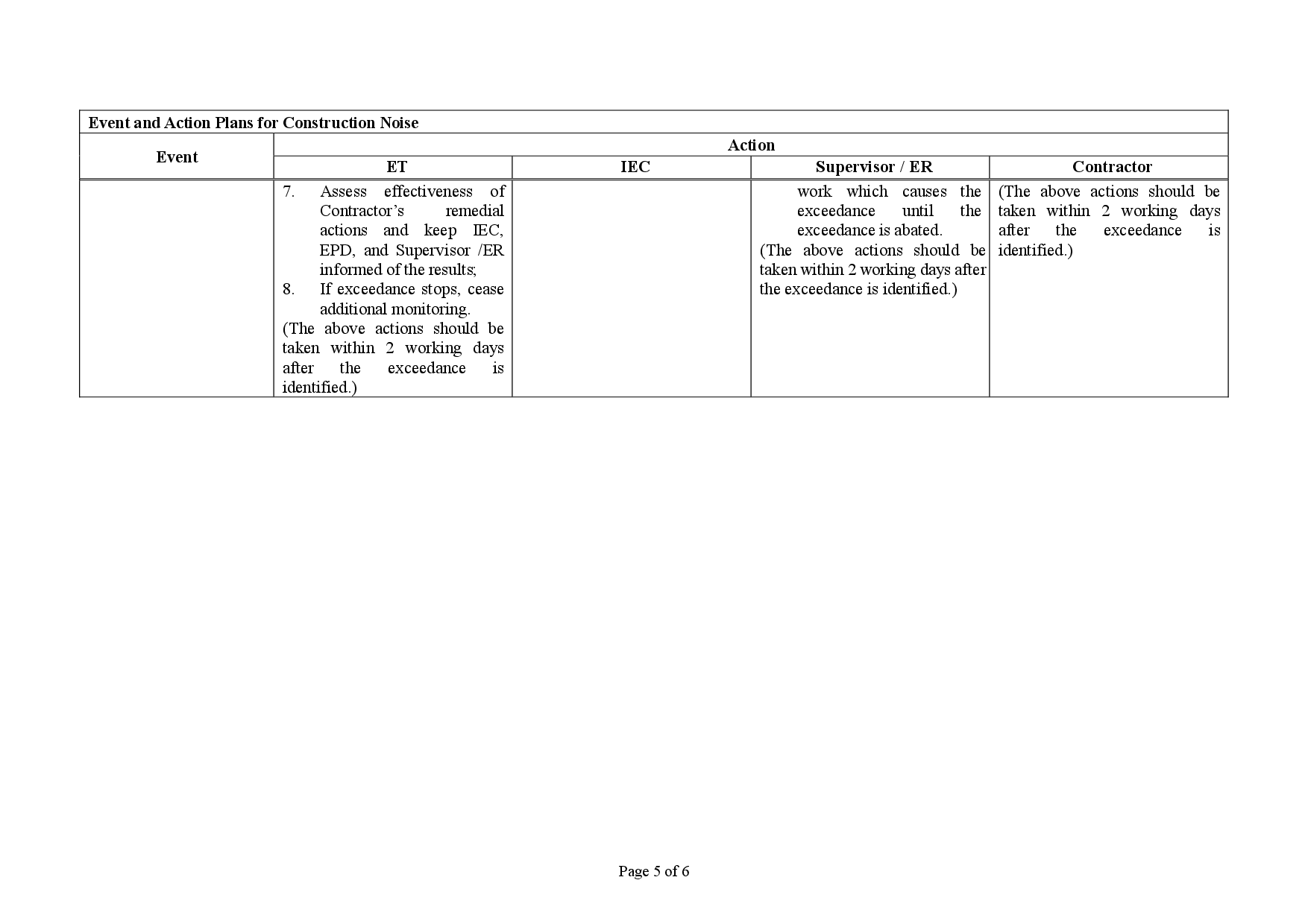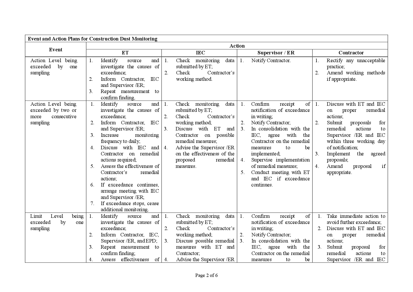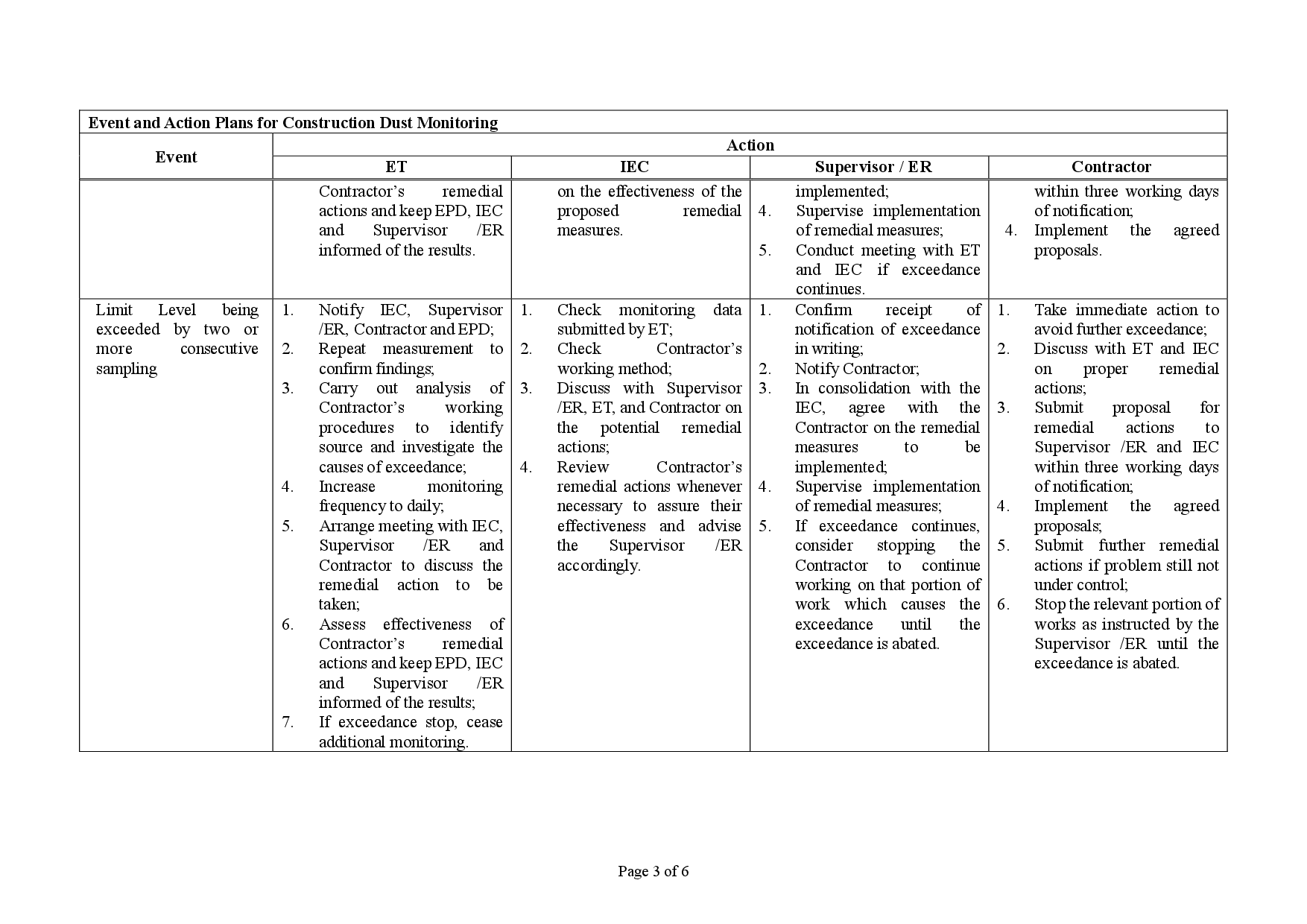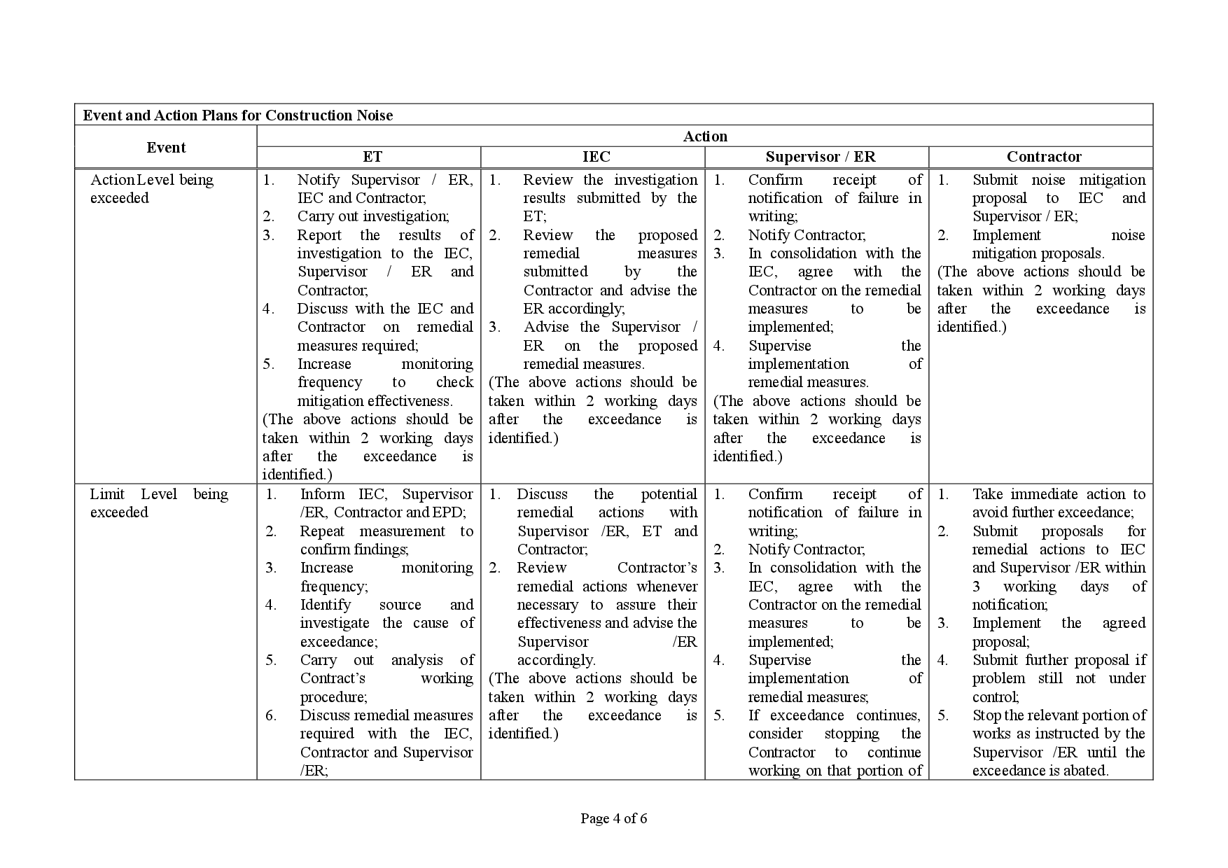 Appendix E – Event and Action Plans for Construction Dust Monitoring, Construction Noise and Landscape and Visual Impact