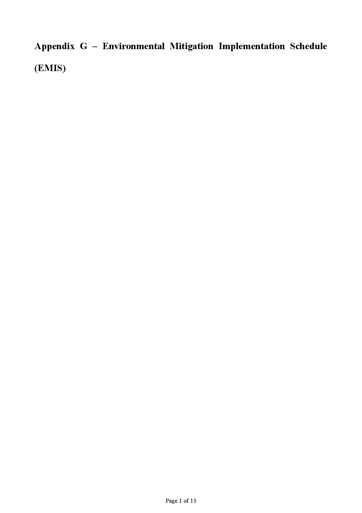 Appendix G – Environmental Mitigation Implementation Schedule (EMIS)